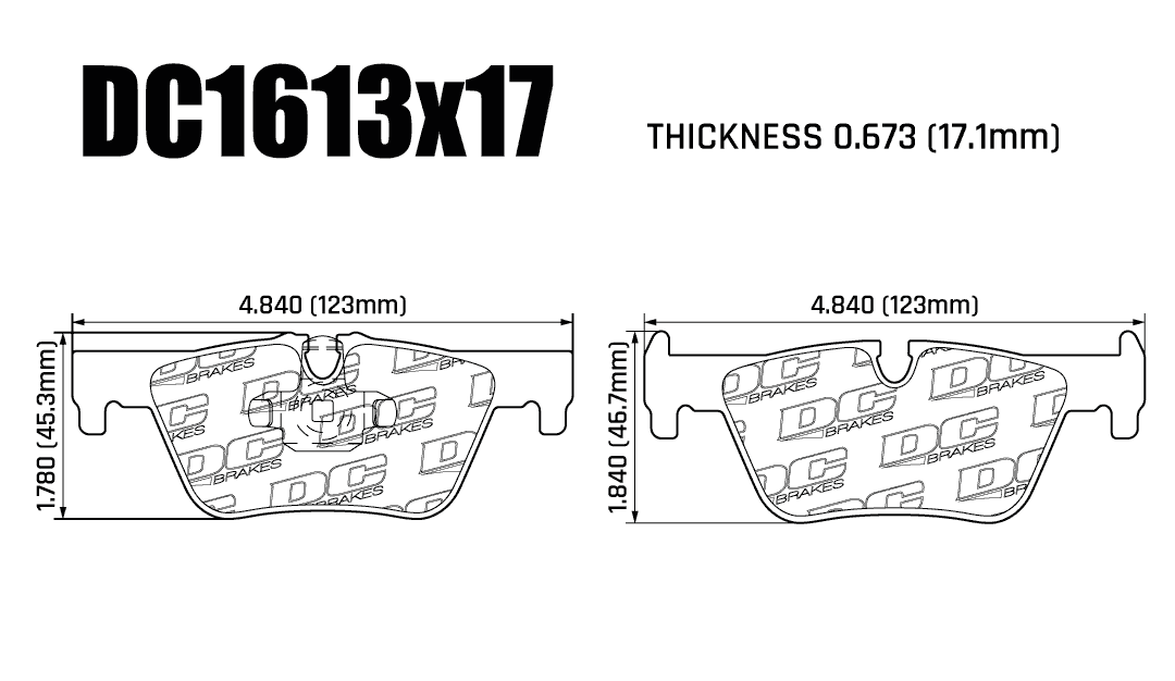 DC1613x17 is a high-performance rear brake pad developed for modern BMW passenger vehicles equipped with FMSI D1613 calipers. Designed to match OE pad geometry while improving thermal stability, it provides consistent friction output, precise pedal feel, and predictable braking behavior in daily and spirited driving conditions.
